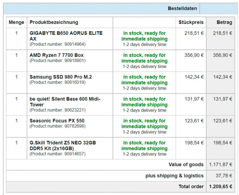 Комплектующие в итоге я не стал заказывать на испанских сайтах, а заказал на немецком Computeruniverse.net (хорошо жить в ЕС!), на котором и выбор больше, и цены ниже.