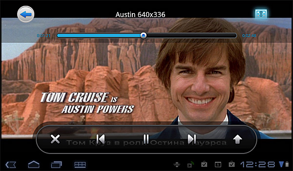 С видео тут все очень прилично, я даже и не ожидал. Видит основные форматы (MP4, AVI, WMV) и их воспроизводит без всяких проблем. Даже 1080i воспроизводится совершенно спокойно и без тормозов. Единственное - не понимает "матрешку" (MKV) и не понимает внешние субтитры.