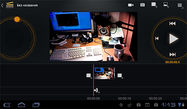 Утилита для обработки видео. Вроде даже и неплохая, хотя не очень понятно, какой смысл это делать на планшете. Разве что в совсем дорожных условиях.