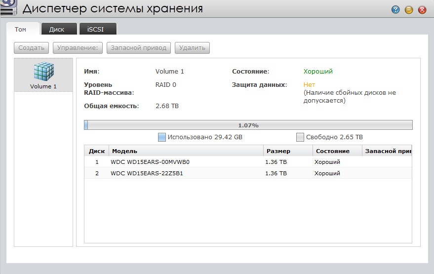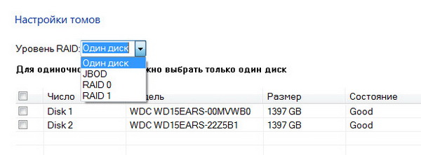 Какой режим выбирать? Я обычно на сетевых накопителях выбираю режим, когда каждый диск представлен в отдельности: важные данные при этом держу сразу на обоих дисках, а то, что не жалко и потерять (всякие сериалы и так далее), - на одном. При такой конфигурации, если что-то происходит с одним диском, информация на втором остается в целости и сохранности.