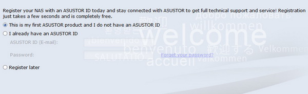 При первом входе в админку система предложит создать ASUSTOR ID (потребуются e-mail и пароль), которые понадобятся, если вы захотите устанавливать под этот накопитель новые приложения.