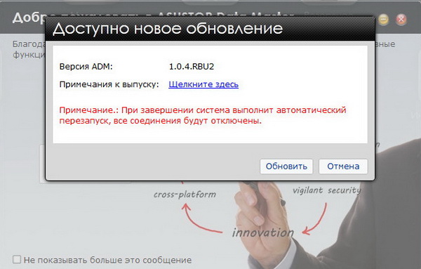 Если для этого накопителя появилась новая прошивка, админка вам об этом сообщит и предложит обновить прошивку NAS.