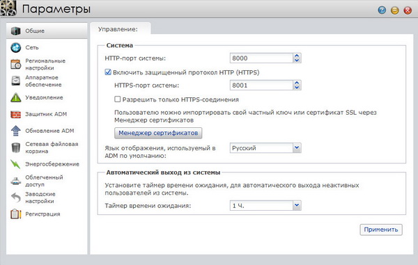 Настройки у этого NAS - довольно разнообразные. Давайте по ним пробежимся.