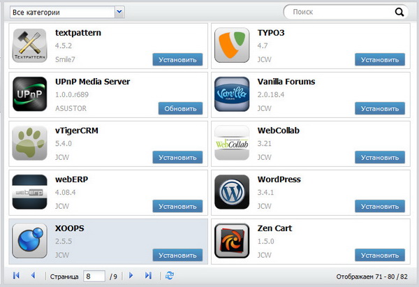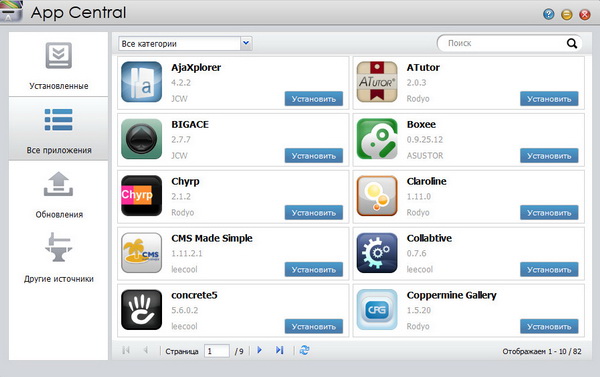 Если зайти в закладку "Все приложения", то мы увидим аж 82 приложения, которые можно скачать и установить в накопитель.
