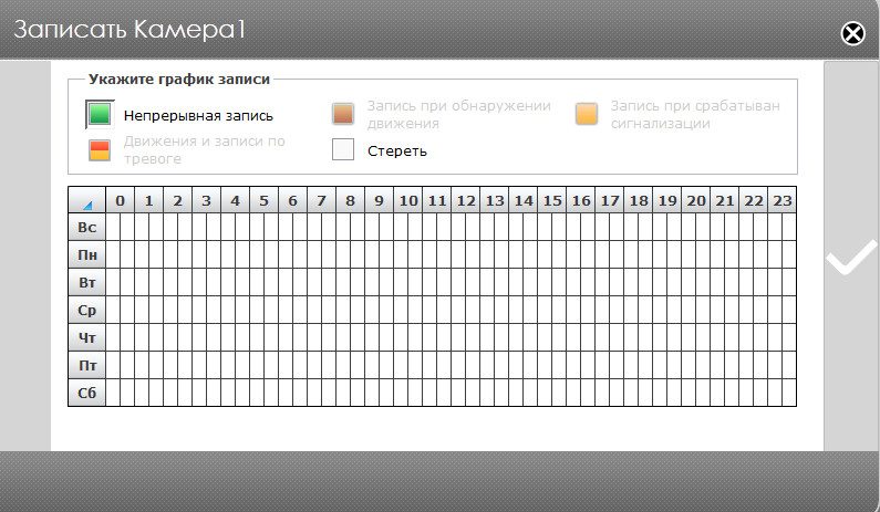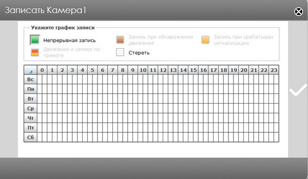 Задаем график записи: когда все время писать, когда по движению (или по сигнализации, если поддерживается).