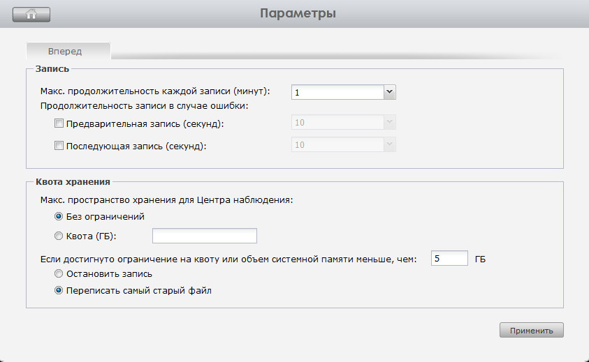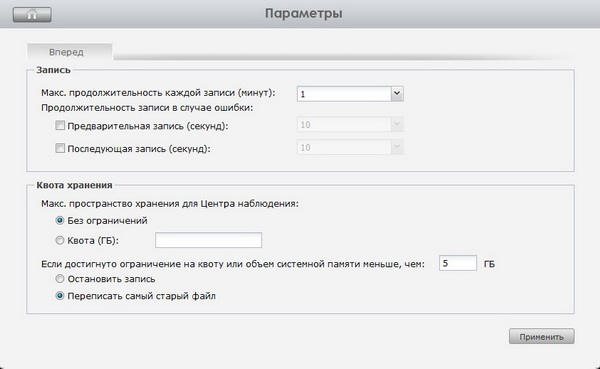 Ну и задаем параметры записи: чтобы контролировать занимаемое пространство и переписывать старые файлы при необходимости.