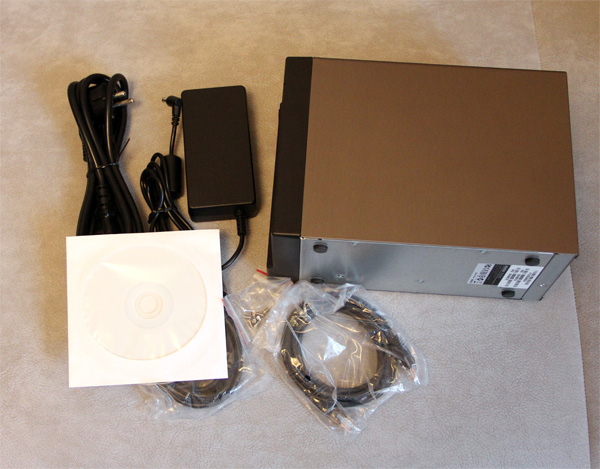 Комплектация: NAS, адаптер питания, два сетевых кабеля, диск с программным обеспечением, комплект винтов для установки дисков 3,5", комплект винтов для установки дисков 2,5".