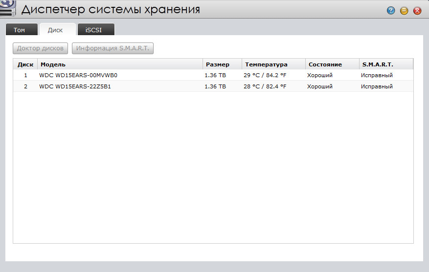 В этом приложении можно следить за состоянием установленных в накопителе дисков.