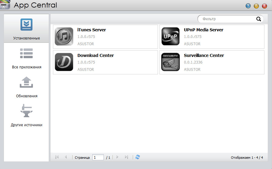 По умолчанию установлено четыре приложения, которые можно включить. Это сервер iTunes (для устройства под OS X или iOS), UPnP медиасервер (раздача медиаданных по сети), Download Center (торрент-клиент) и сервер видеонаблюдений.