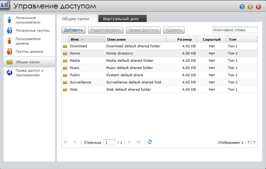По умолчанию заданы стандартные папки (часть из них - для установленных в системе сервисов вроде веб-сервера и сервера видеонаблюдений (Surveillance)).