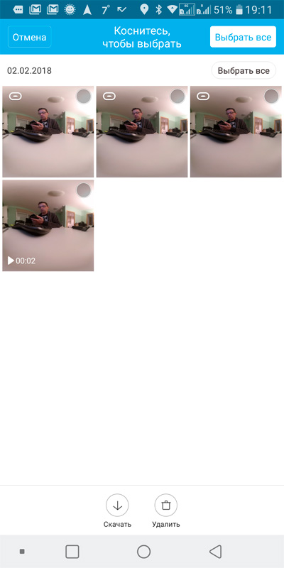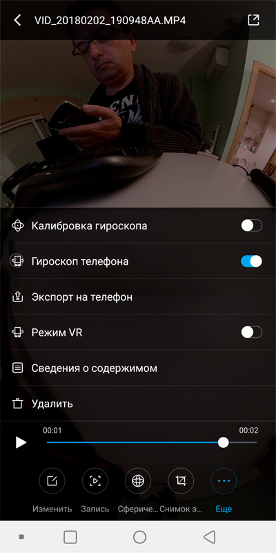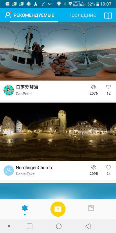 Снятые кадры и видео доступны в программе, их там можно посмотреть в режиме 360 градусов.