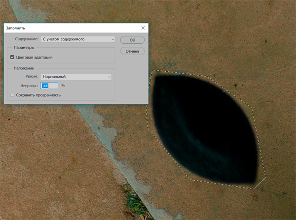 Для новых версий "Фотошопа",которые умеют работать с 3D-панорамами иимеют режим "Выполнить заливку с учетомсодержимого" - все намного проще.Сконвертированную в смартфоне панорамунужно импортировать как сферическуюпанораму. Далее выделить с помощью лассослед от штатива, после чего "Редактирование- Выполнить заливку - С учетом содержимого".После этого экспортировать панораму. Тут и возни на порядок меньше, и результатзначительно лучше.