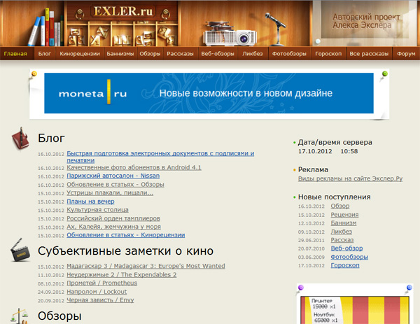 Чуть не забыл. Алекс, это ведь только о блоггерстве? А ведь есть еще и писатель Экслер...