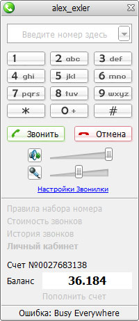 Еще хочу прорекламировать SmartVoip - у него самые дешевые звонки на мобильники в Европе и России среди всех Бетамаксовских клонов (дешевле скайпа раза в 4-5, городские дешевле раза в 2. Про отсутсвие "платы за соединение" вообще молчу). И клиент шустрый - со скайпом у меня трубка слегка подтормаживает, а с SmartVoip летает.