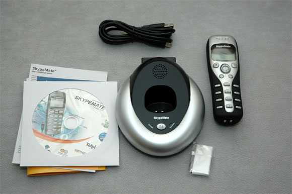 В комплект входят трубка, аккумулятор, крэдл с модулем беспроводной связи, кабель USB, диск с драйверами, какая-то мелкая документация и несколько карточек-завлекалочек на различные сервисы VoIP.
