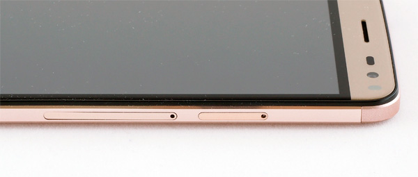 На левом торце - качелька громкости и кнопка питания. Ход у них очень маленький и достаточно невнятный. И уж на черта эти кнопки разместили на левом торце, а не на правом - понятия не имею. Почти все остальные производители по крайней мере кнопку питания размещают строго на правом торце: так ее удобно нажимать указательным пальцем, когда держишь смартфон в левой руке. А тут - все кнопки на левом. Это мне не понравилось, но оно не смертельно: можно приучиться нажимать кнопку питания большим пальцем. Впрочем, забегая вперед, замечу, что телефон умеет включаться от постукивания по дисплею, так что этот косяк с кнопкой легко можно простить.