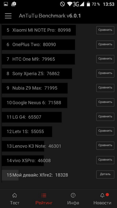Ну и по PCMark. У Lenovo K3 Note - 3079.
