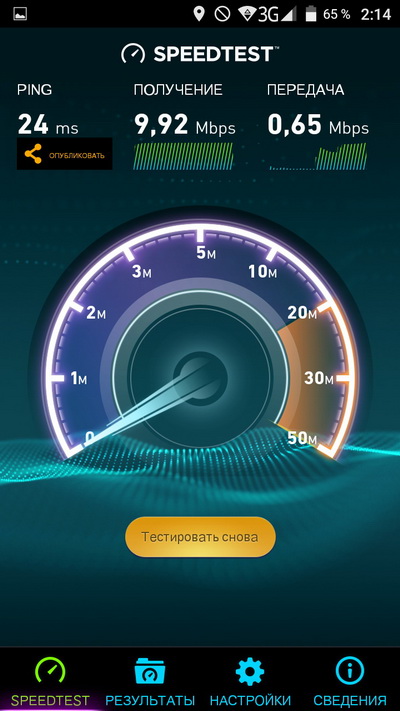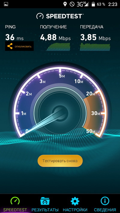 4G тут нет, 3G по тесту показал не максимальные, но вполне нормальные параметры скорости.