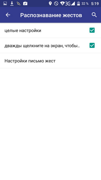 Настройка распознавания жестов. Самое главное - включение экрана постукиванием.