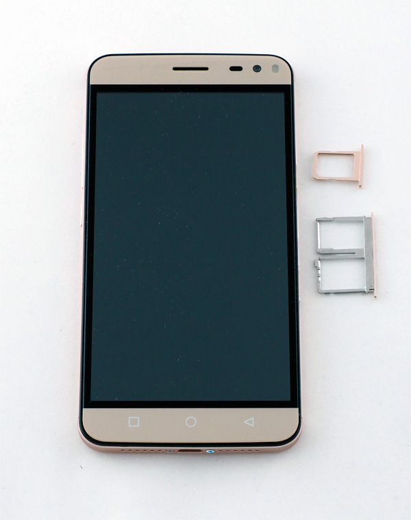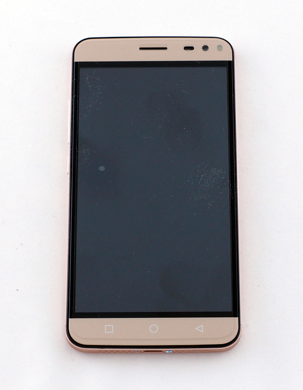 Металлический корпус, стекло на верхней крышке - смартфон выглядит заметно лучше, чем ожидаешь от устройства стоимостью чуть больше 70 долларов. Вот только не очень понял, зачем тут сделали этот черный ободок - он придает смартфону слегка траурный вид. А-а-а-а, понял, это чтобы подчеркнуть потусторонность телефона в жизни покупателей!