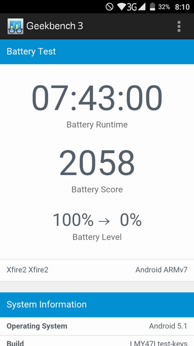 Ну и батарейный тест Geekbench - сколько смартфон проживет на самой минимальной загрузке.