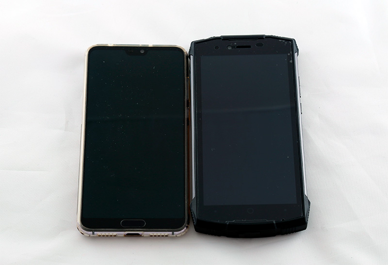 Ну и вот наш герой рядом с изящным Huawei P20 Pro. Я назвал эту трогательную композицию "Мачо и ботан".