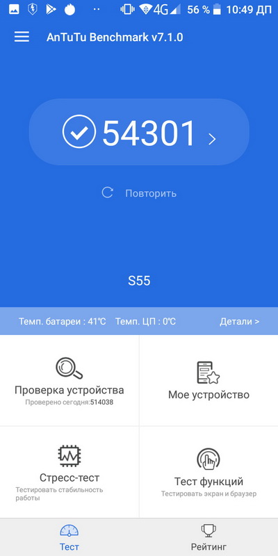 Замечу также, что при серьезных нагрузках у смартфона наблюдается нагрев в районе сканера отпечатка пальца, и это приятный бонус: если вы будете зимой сидеть в избушке без обогрева, достаточно запустить тест Antutu, сесть на смартфон задницей (он это спокойно переживет) и вы быстро согреетесь.