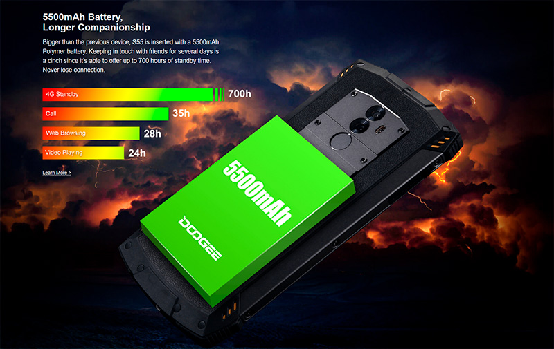 Ну и скажите, как его зовут?!! Doo - та-та-та-та-та-та-та - Gee - та-та-та-та-та-та - S55. Doogee S55! Защищенный, водонепроницаемый. В обзоре я над ним буду измываться по полной программе. Заодно выясним, умеет ли он со всем этим богатством вообще звонить.