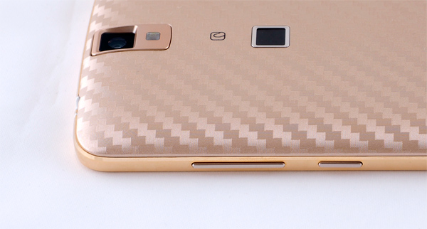 Камера и сканер отпечатка имеют металлическую окантовку, задняя крышка выполнена из пластика, но имеет текстуру, изображающую углепластик.
