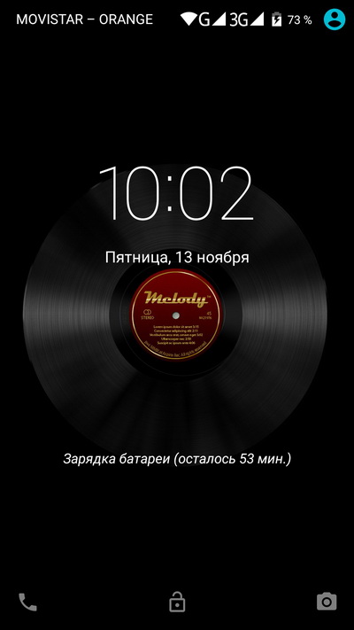 Стандартное окно блокировки. Если запущен аудиоплеер, то его виджет будет здесь выводиться вместе с обложкой диска.