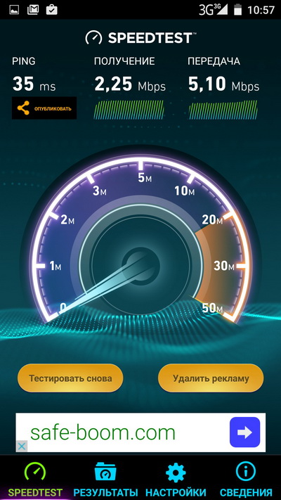 Тест мобильного Интернета. Для условий тестирования скорость была неплохая. (4G в мою деревню пока не провели.)