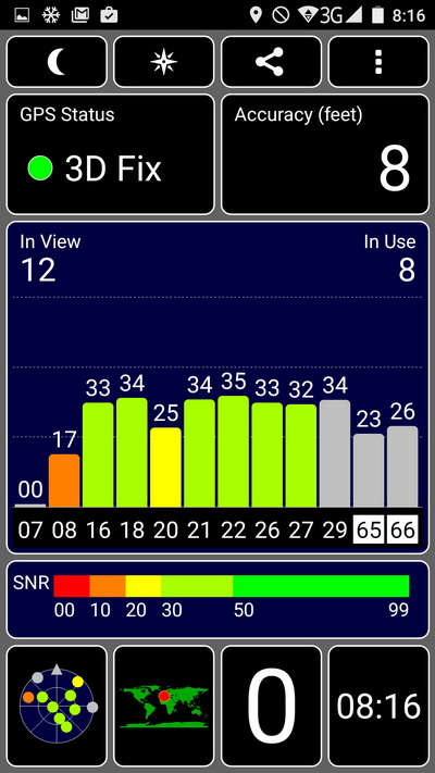 Максимальная яркость не очень высокая, однако тут присутствует эффективный антибликовый фильтр, благодаря которому на ярких солнечных лучах изображение на дисплее вполне различимо.