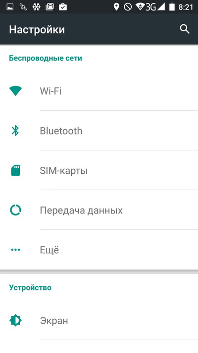 В настройках есть некоторые дополнения по сравнению со стандартным Android.