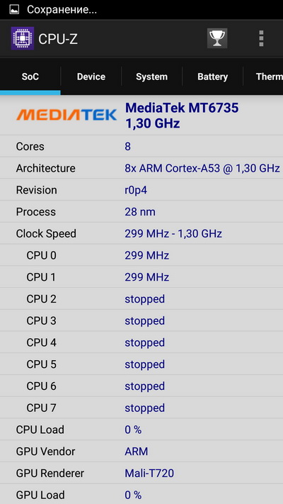 Процессор: MTK6753 1,3 ГГц 64-бит, 8-ядерный
