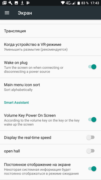 В основном типовые настройки Android 7 и есть несколько дополнительных опций, которые, как обычно в подобных случаях, на русский перевести не удосужились.