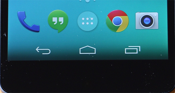 Других управляющих кнопок на Nexus 5 нет вообще: начиная с версии 4 системы Android упор делается на экранные клавиши, расположение и количество которых каждый производитель может менять. (Что создает некоторые неприятности людям, которые, как я, меняют смартфоны как планшеты.)