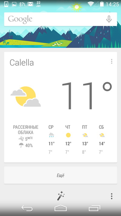 "Также здесь навечно впилили сервис Google Now в качестве первого десктопа. Вы это не можете отредактировать - в данной оболочке, разумеется."