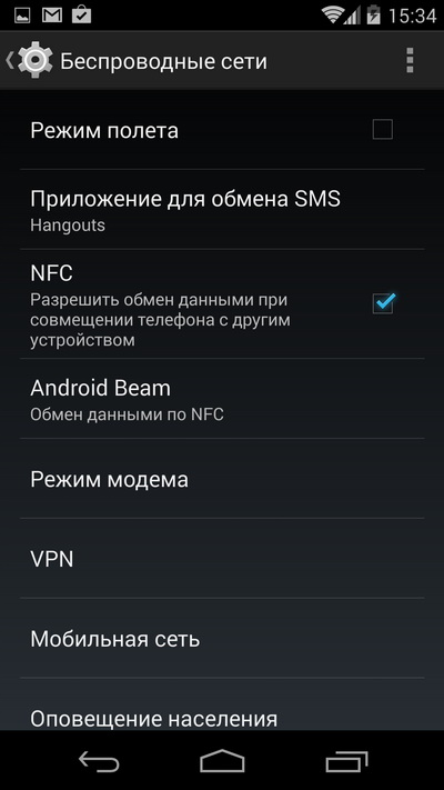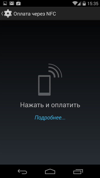 Функция оплаты через NFC - прямо из настроек.