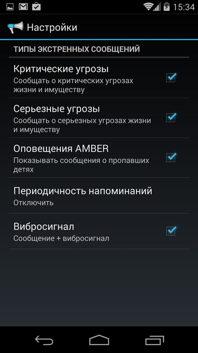 Настройка типов экстренных сообщений. Насколько я понимаю, для России это не актуально.
