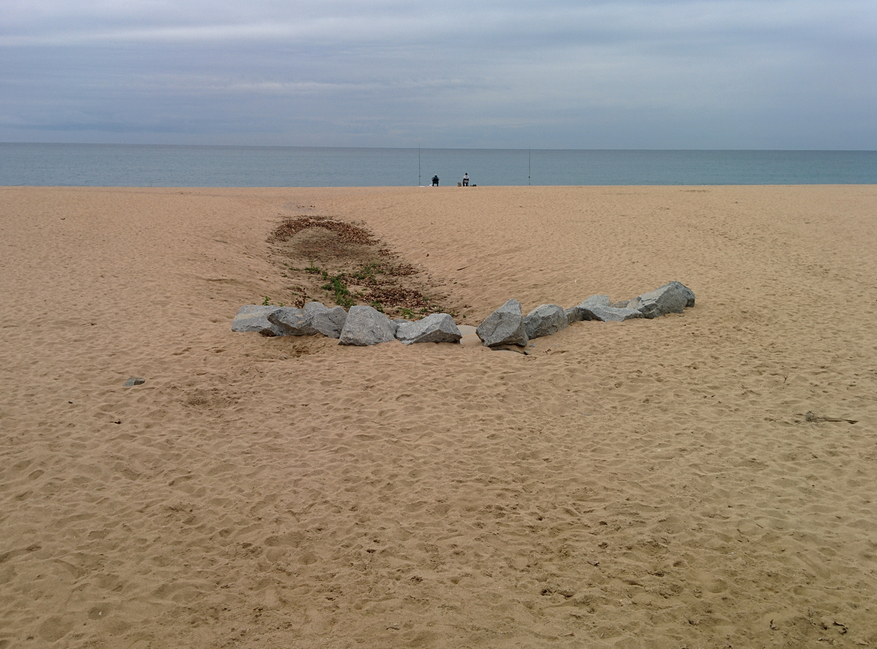О, на пляже можно будет играть в мини футбол летом. А что там за "сад камней" и след от метеорита? "Дикари" какие-то ваяют или администрация пляжа задумала композицию?