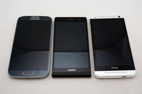 Вот наш герой рядом с Samsung Galaxy S 4 и HTC One Dual Sim.