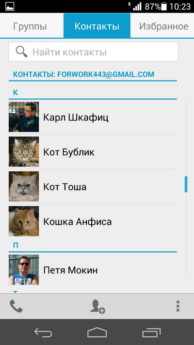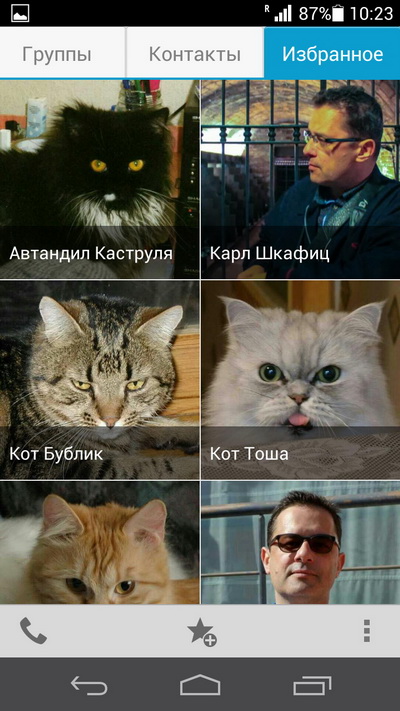 Удобные контакты с расположенной сверху строкой поиска. Поддерживаются также избранные контакты и группы.