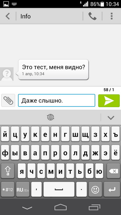 Отправка/получение SMS/MMS. Кстати, обратите внимание на клавиатуру: она тут тоже своя и более или менее удобная.