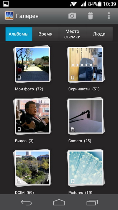 Галерея изображений/видео. Делится по альбомам, дате, месту съемки, по людям.