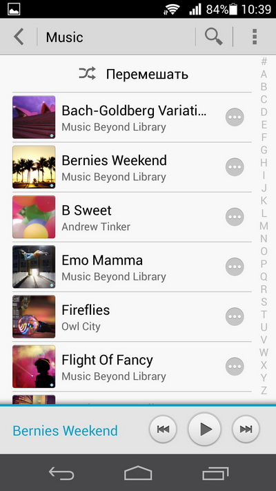 Аудиоприложение. Сортировка по плей-листам, альбомам, исполнителям, композициям и, что полезно, папкам!