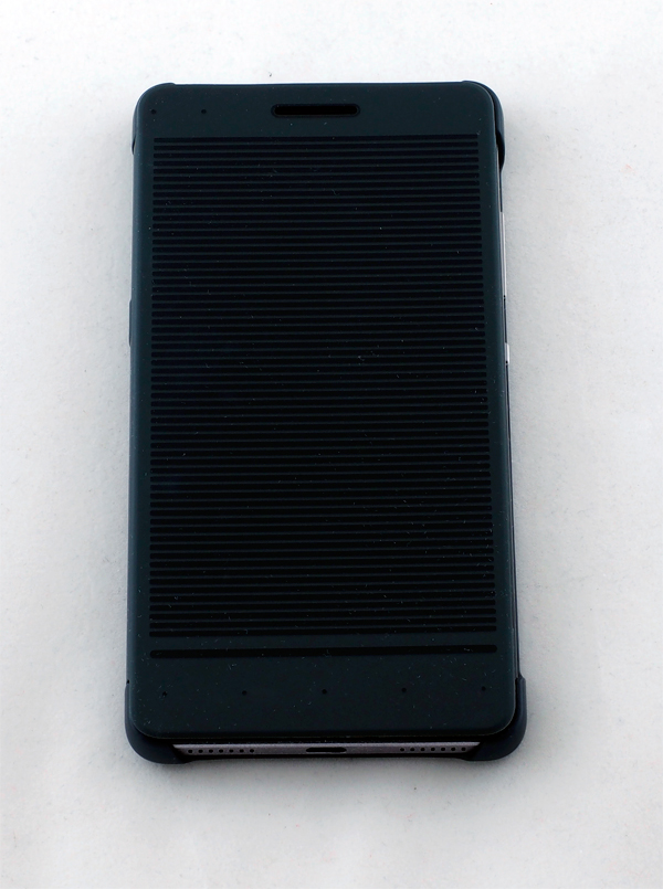 У чехла есть интересная особенность: если нажать кнопку питания, то через прорези чехла смартфон покажет текущее время.