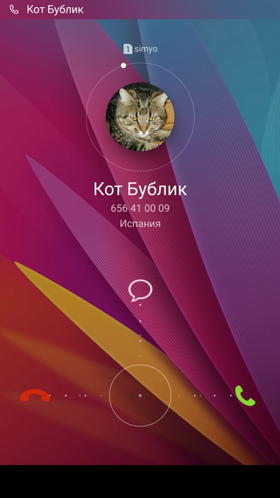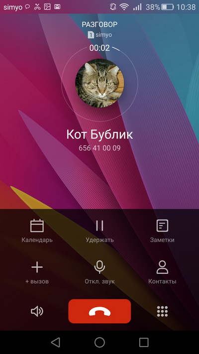 Режим разговора. Обратите внимание, что прямо во время разговора можно вызвать календарь и заметку - полезная штука.