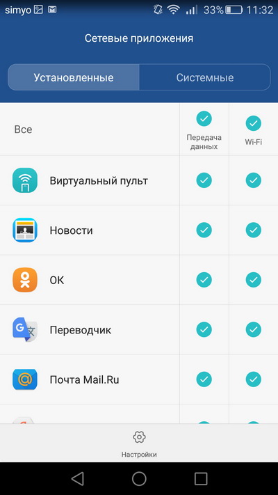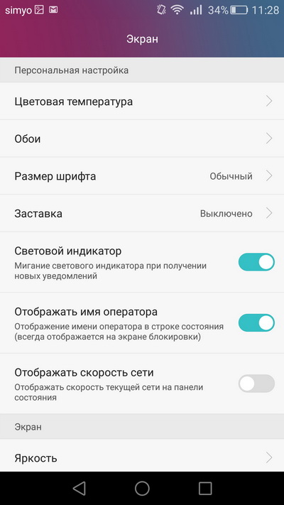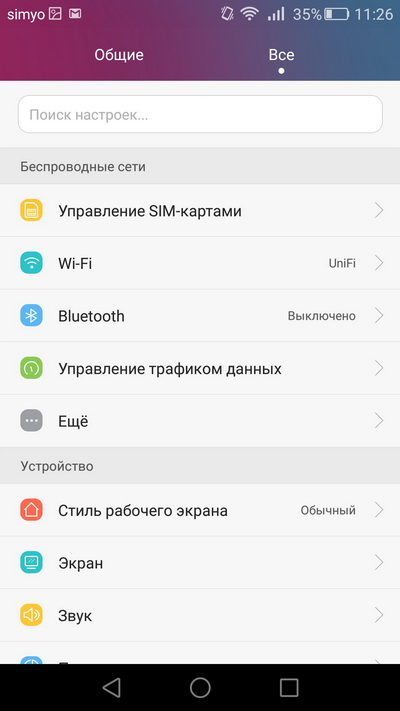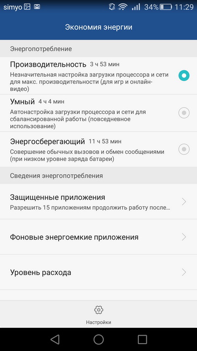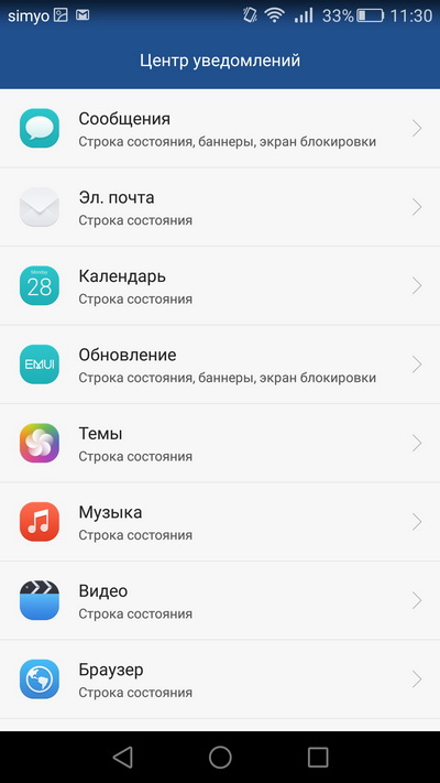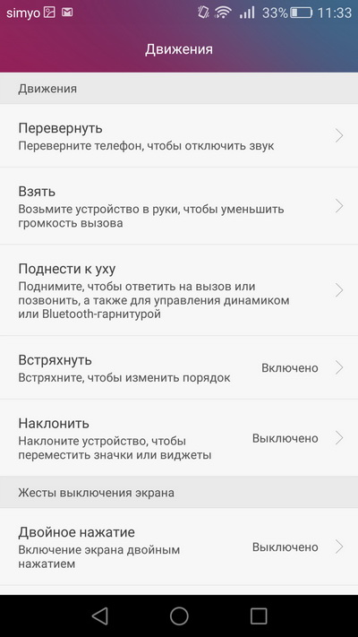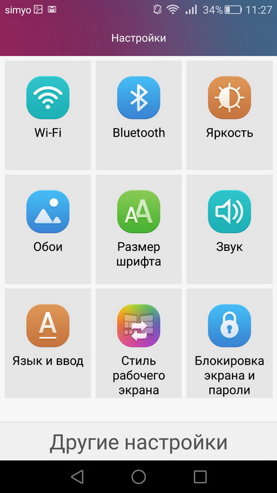 Как обычно у Huawei, настройки значительно расширены по сравнению со стандартными.