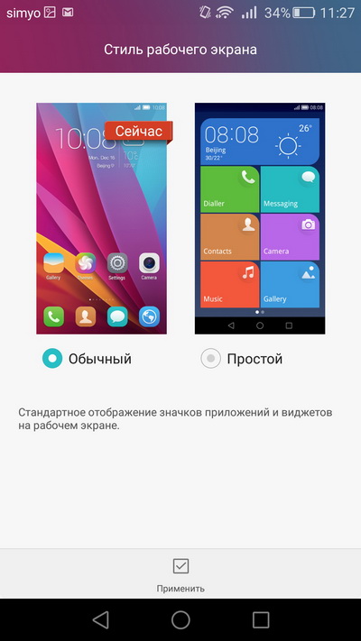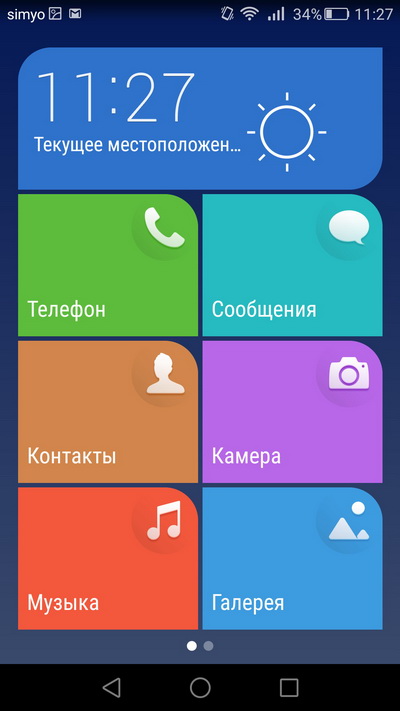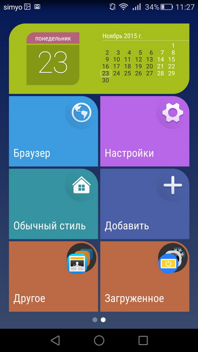 Стиль рабочего экрана можно переключить в простой режим - это очень удобно пенсионерам и людям с ослабленным зрением.