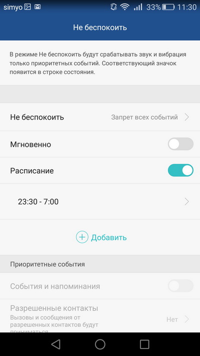 Продвинутый режим "Не беспокоить". Можно задавать приоритетные события, которые будут срабатывать в режиме "Не беспокоить".